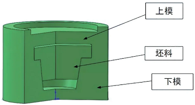 經(jīng)過(guò)分析選擇如圖28所示的單元成形模型,此模型是一個(gè)正擠壓模型,下模由擠壓筒和擠壓型腔組成。