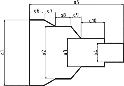 輸出和輸入的向量設(shè)計(jì),是將鍛件的特征信息模型進(jìn)行必要的數(shù)據(jù)處理,對(duì)數(shù)據(jù)進(jìn)行歸一化處理,把所有的數(shù)據(jù)都放置于[0.1]之間,主要原因?yàn)殡[藏層所選用的是Sigmod型激勵(lì)函數(shù)。圖29是萬(wàn)向節(jié)鐘形罩最終鍛件的外形簡(jiǎn)要圖,鍛件特征信息模型的初始數(shù)據(jù)取自此圖。圖30是萬(wàn)向節(jié)鐘形罩的模具圖,輸出向量的數(shù)據(jù)取自此圖,主要是相應(yīng)模具的關(guān)鍵尺寸。